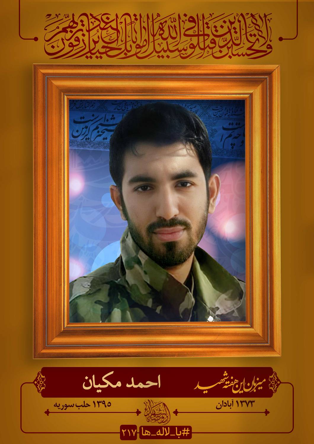 شهید احمد مکیان از جمله شهدای مدافع حرمی است که برای نثار جان خویش برای اهلبیت (ع) و آرامش همه مسلمانان جهان سر از پا نشناخته و دست از تعلقات دنیایی خویش برداشت تا در آنسوی مرزها، مدافع حریم حرم زینبی و حریم سرزمین مادریاش باشد.