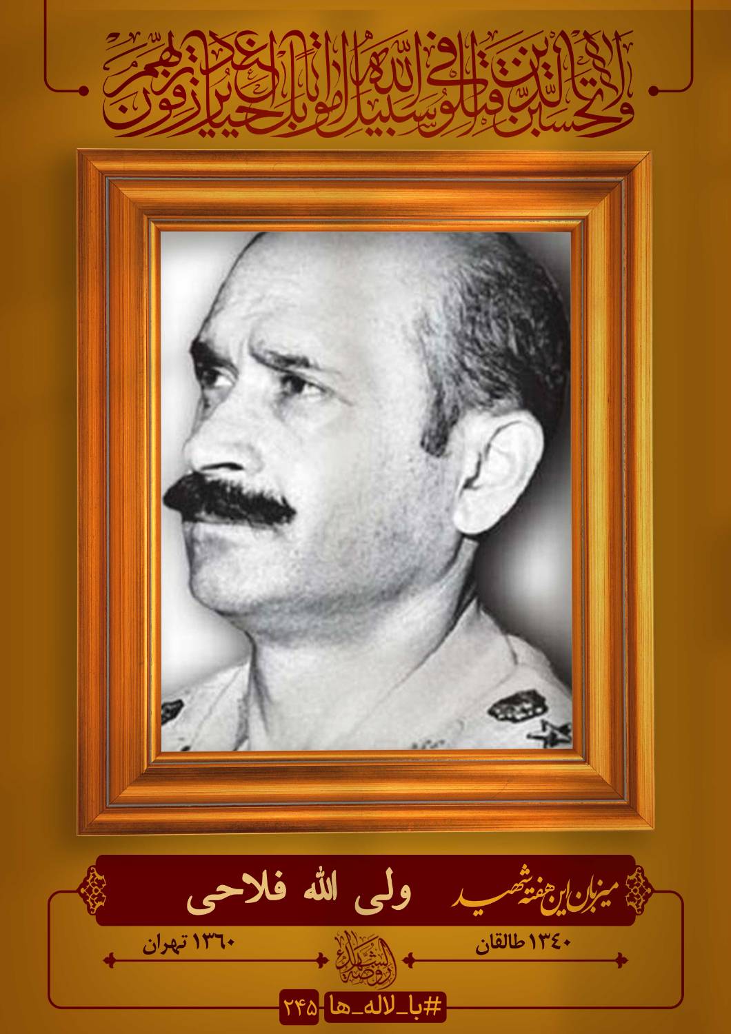 شهید ولی الله فلاحی یکی از شهدای ارتش که در 10 اردیبهشت سال 1310 در شهر طالقان متولد شد و در 7 مهر سال 1360 در کهریزک تهران به شهادت رسید .